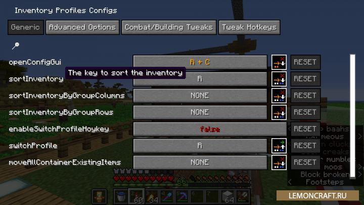 Мод на сортировку инвентаря Inventory Profiles Next [1.17.1] [1.16.5]